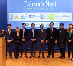 Falcon's Nest is a pitch competition that allows Bentley Students to create a self-sustaining business to solve problems faced by individuals in our community. All students also receive access to an exclusive masterclass along with mentorship and guidance for planning, pitching and execution.
